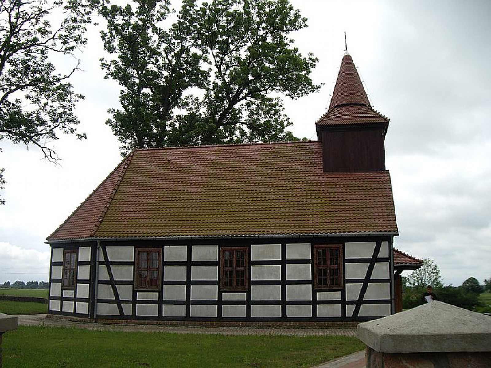 Obecny kościół został wybudowany w XVIII wieku i częściowo przebudowany w XIX wieku. Jest orientowany, częściowo ryglowy (strona północna i wschodnia), częściowo murowany z cegły (strona południowa), prezbiterium wyodrębnione, zakończone trójbocznie. Od strony zachodniej nadbudowana nad nawą wieża drewniana, szalowana, zwieńczona dachem czterospadowym przechodzącym w ośmioboczną iglicę, kryta blachą.Drzwi i okna zakończone prosto. Dach trzyspadowy, pokryty blachą. Sufit płaski, drewniany. Chór muzyczny prostokątny, wsparty na 4 słupach.Organy do remontu. Wystrój prezbiterium stanowi drewniany ołtarz "twarzą do ludu" , pulpit oraz obraz Matki Bożej Ostrobramskiej z 1954 .